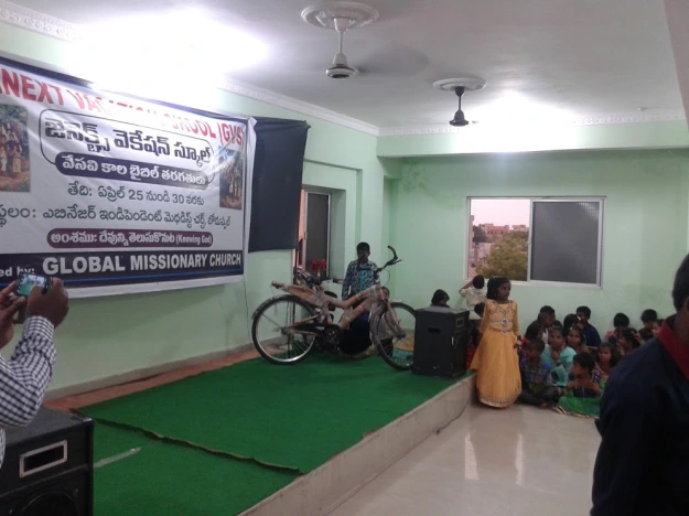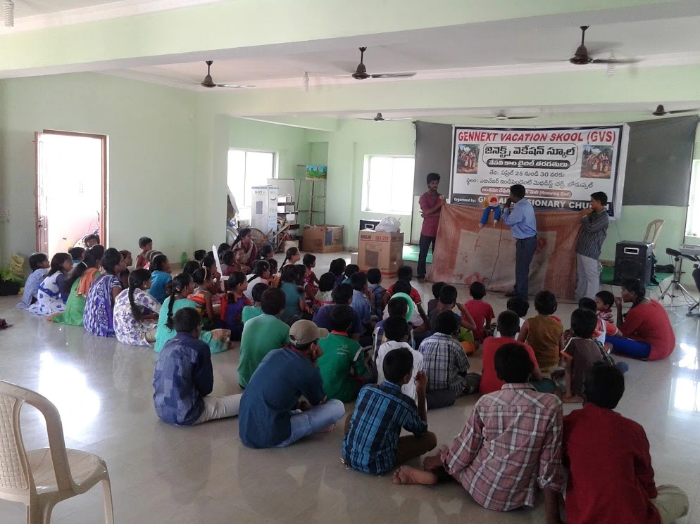 Rev. Reefath Kumar does puppet show and teaches children during Vacation Bible School in Uppal, Hyderabad. He is gifted in composing VBS textbooks. The lessons are designed to make non-christian kids ponder about God as the Creator of this universe and also as a monotheistic God in a pantheistic worldview and accept Jesus Christ as their Lord and Saviour.