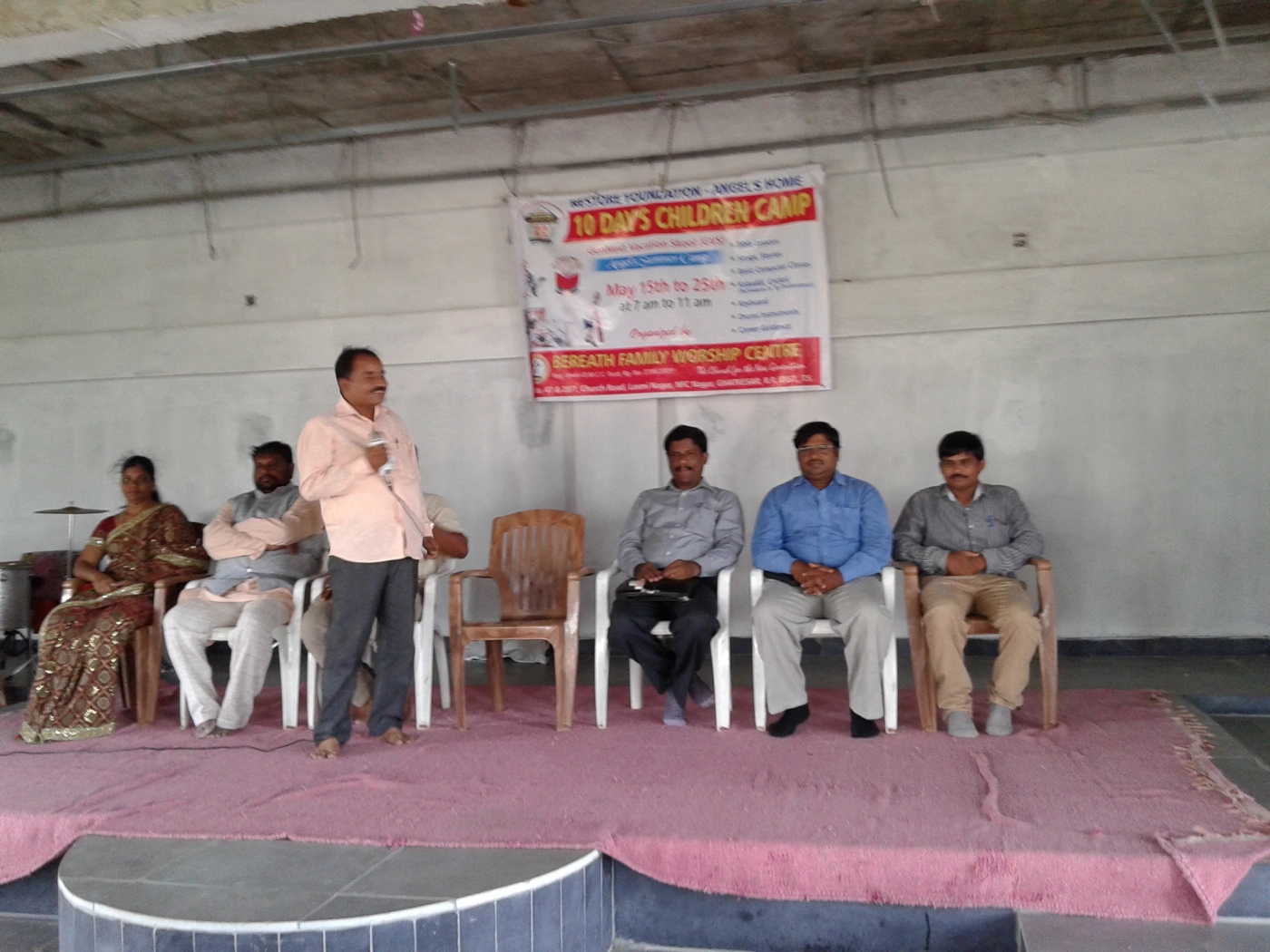 Rev. Reefath Kumar does puppet show and teaches children during Vacation Bible School in Uppal, Hyderabad. He is gifted in composing VBS textbooks. The lessons are designed to make non-christian kids ponder about God as the Creator of this universe and also as a monotheistic God in a pantheistic worldview and accept Jesus Christ as their Lord and Saviour.